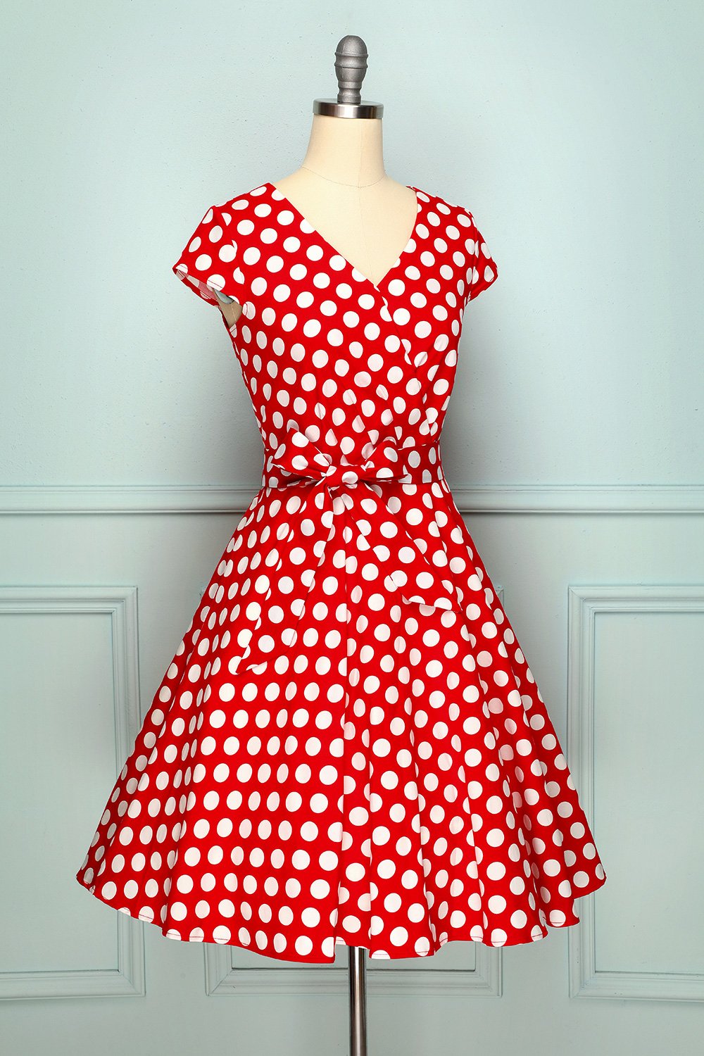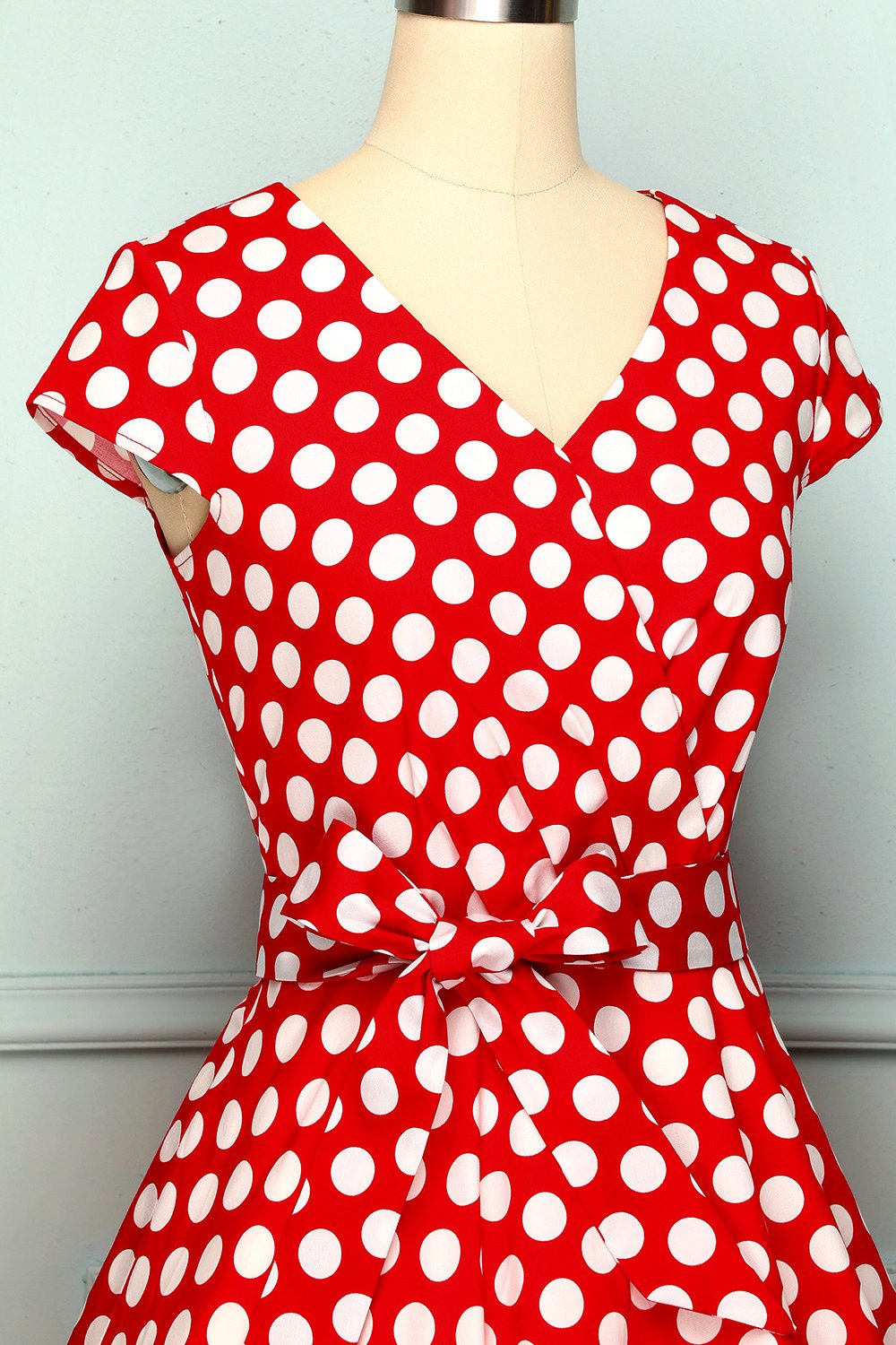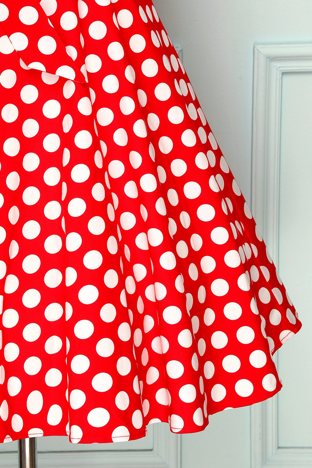 This cheerful vintage polka dot dress is perfect for vintage parties and swing dancing. The bodice is darted to help shape and define your figure, while deep knife pleats add a bit of volume to the flared skirt. You can pair it with one of our petticoats for an excellent look. If this 2020 vintage dress is hanging in your closet, it can be the kind of vintage party dress you'll want to wear every day! In addition, we haven't even told you the best part: the sash isn't sewn onto the vintage swing dress, so you can choose whether to put it on or not.