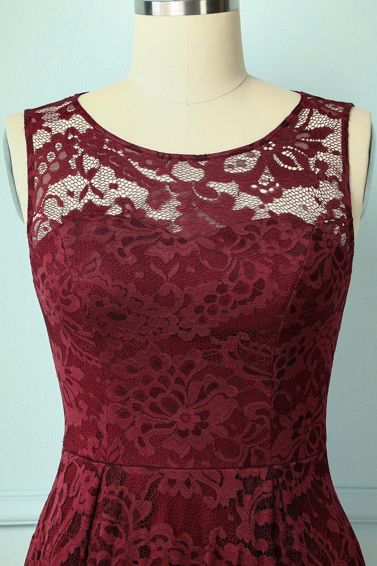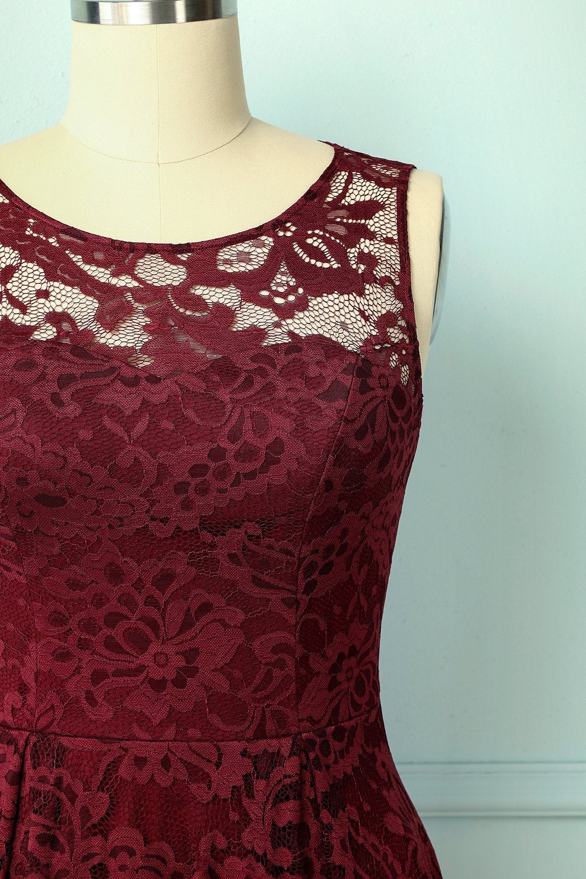 A burgundy high low lace dress for a romantic and dreamy look. The top of the dress is design with sleeveless high collar halter and form fitting bodice. The skirt is in asymmetrical cut that accentuate femininity and elegance which creates an irregular motion as the wearer walks. The over all design of the dress is stylish and classy.